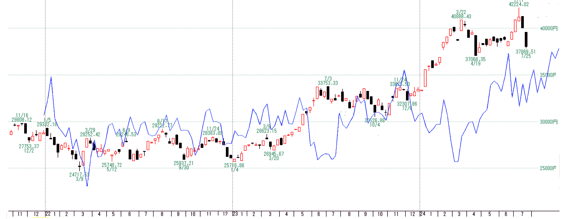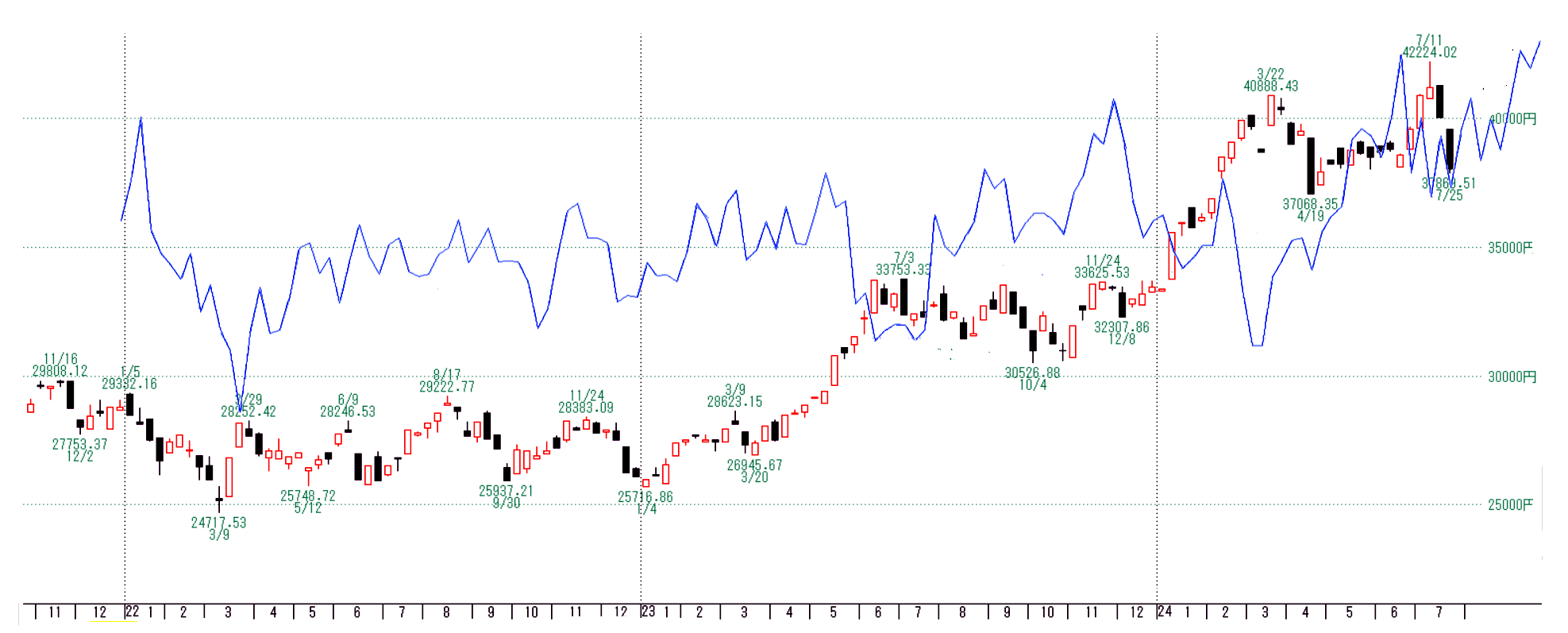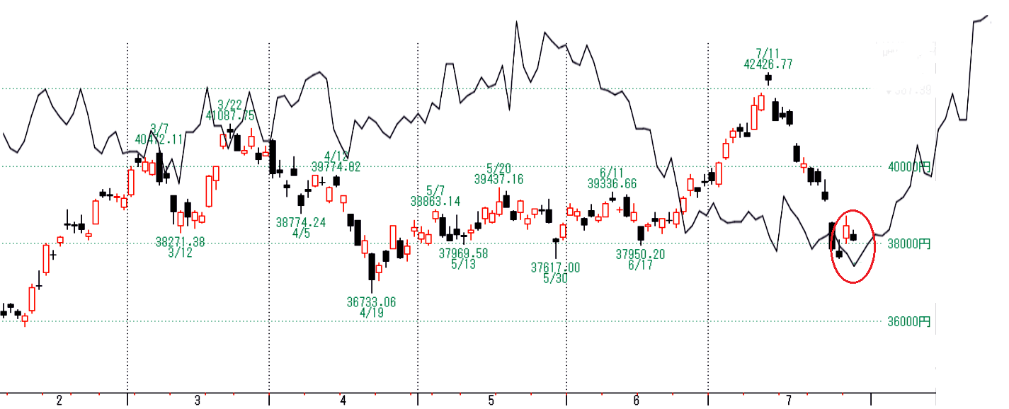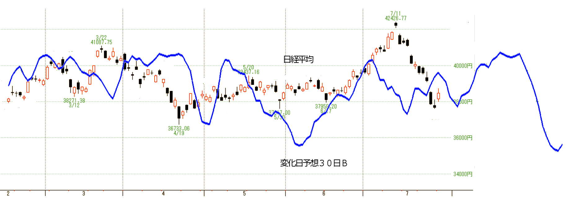 5~6月は日経平均と同じような動きですが、あくまで変化日のみの予想です。変化日予想を上下反転します。